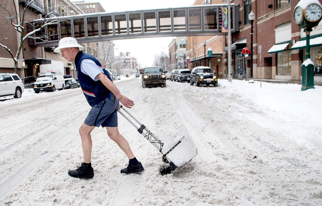 “They call me Pete the Postman,” said Pete Michalowicz as he delivered mail through the snow covered roads of Spokane earlier today. (Kathy Plonka/SR photo)