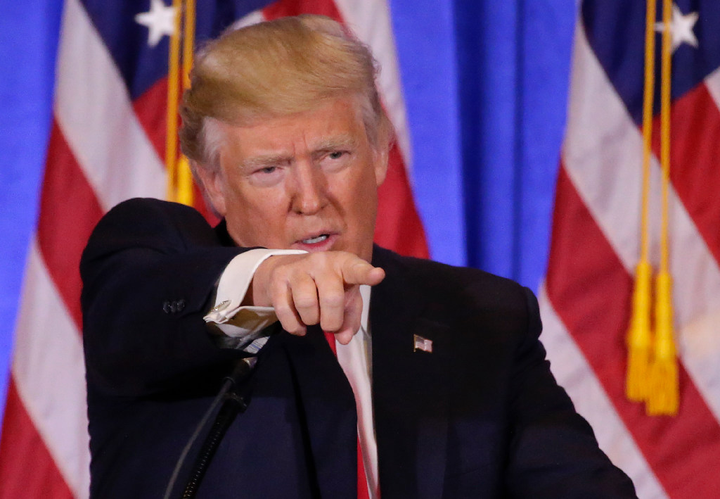 President-elect Donald Trump takes questions during a news conference Wednesday in New York. The news conference was his first as President-elect. (AP Photo/Seth Wenig)
