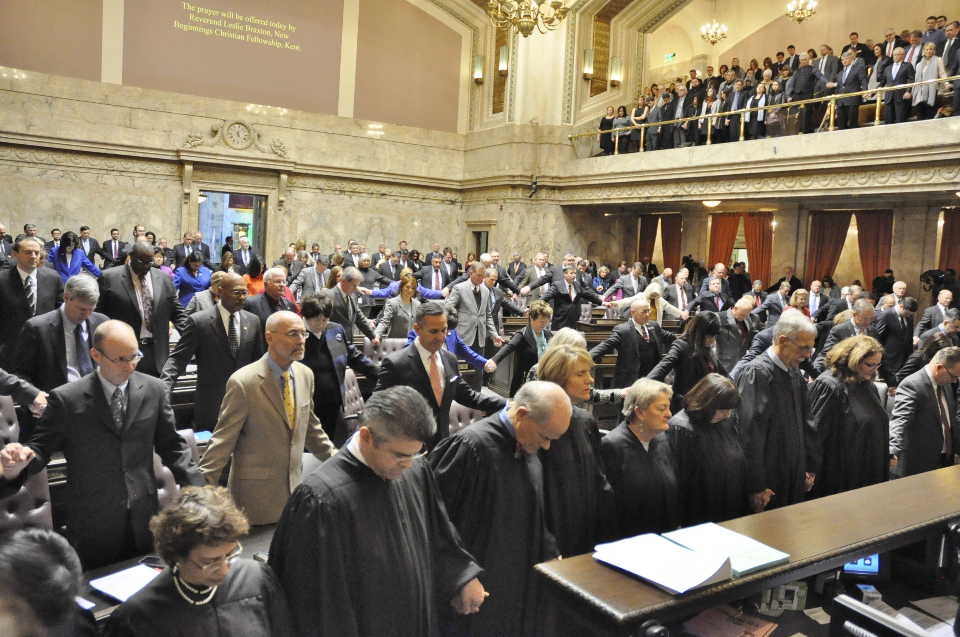 OLYMPIA — The Rev Leslie Braxton asked elected officials and the audience to join hands for the opening prayer.