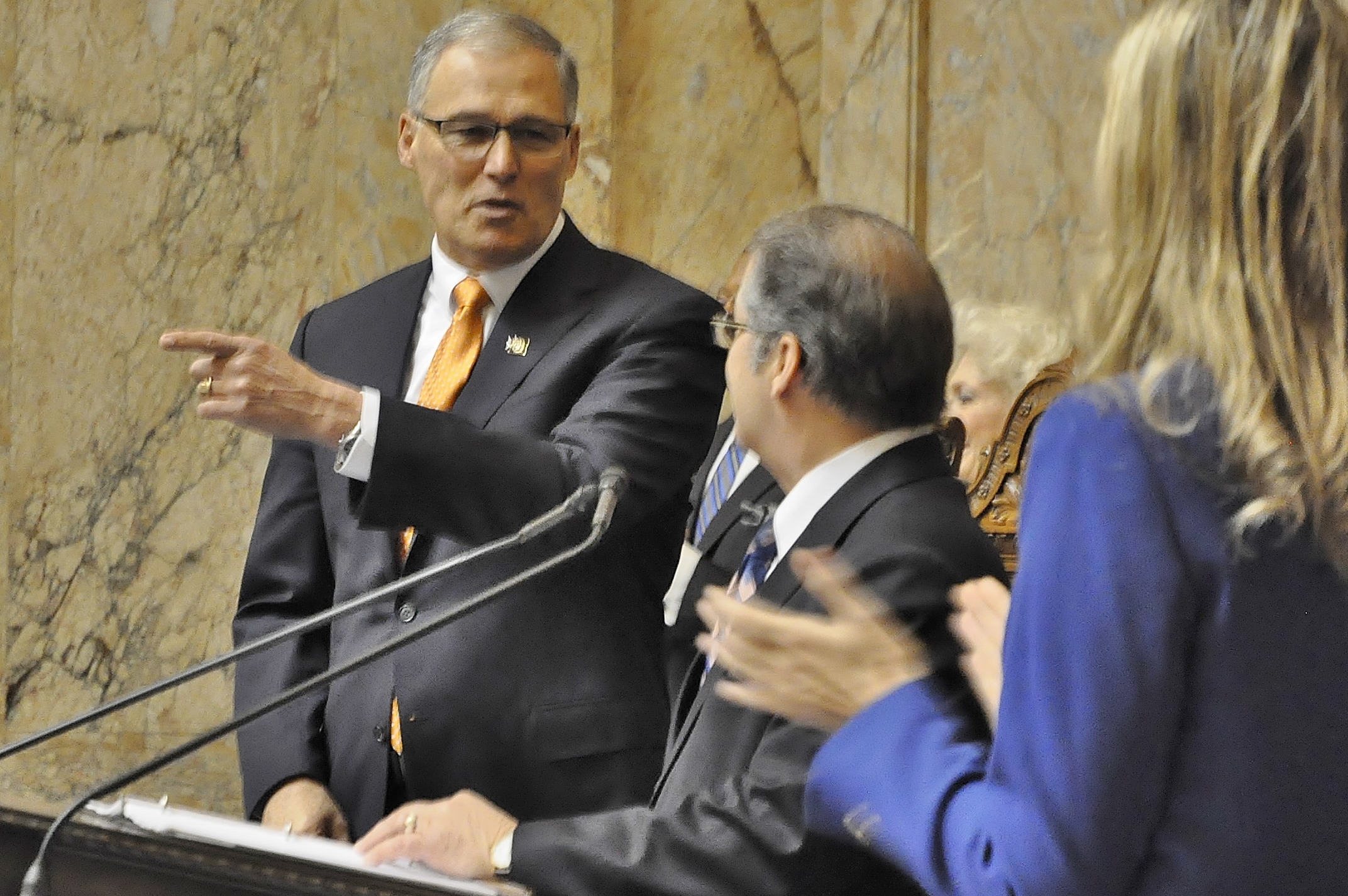 OLYMPIA — Gov. Jay Inslee delivered his second inaugural address Wednesday at a special joint session of the Legislature.