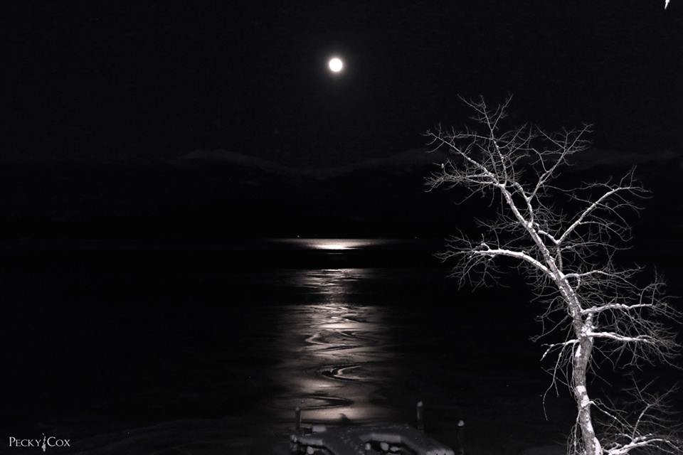 Pecky Cox, of As the Lake Churns blog and Priest Lake Facebook page, offers “full wolf moon over icy Priest Lake” from earlier this week. (Pecky Cox photo)