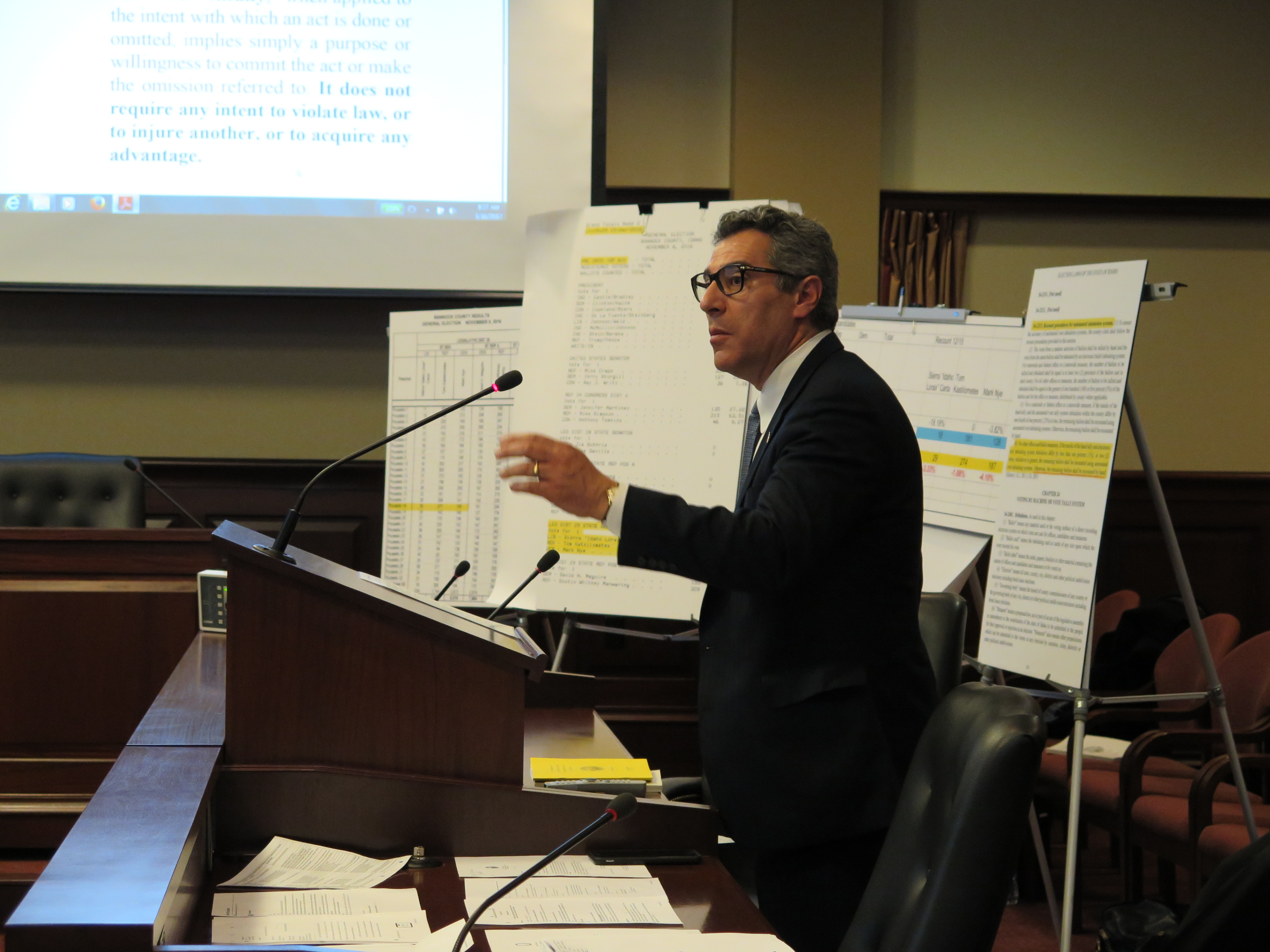 In some cases, he said, “Some of the ballots that were later used to create the recount had overvotes for” Nye, saying, “they had ovals circled for Mr. Nye, and also write-ins circled for Mr. Nye, and his name written in.”