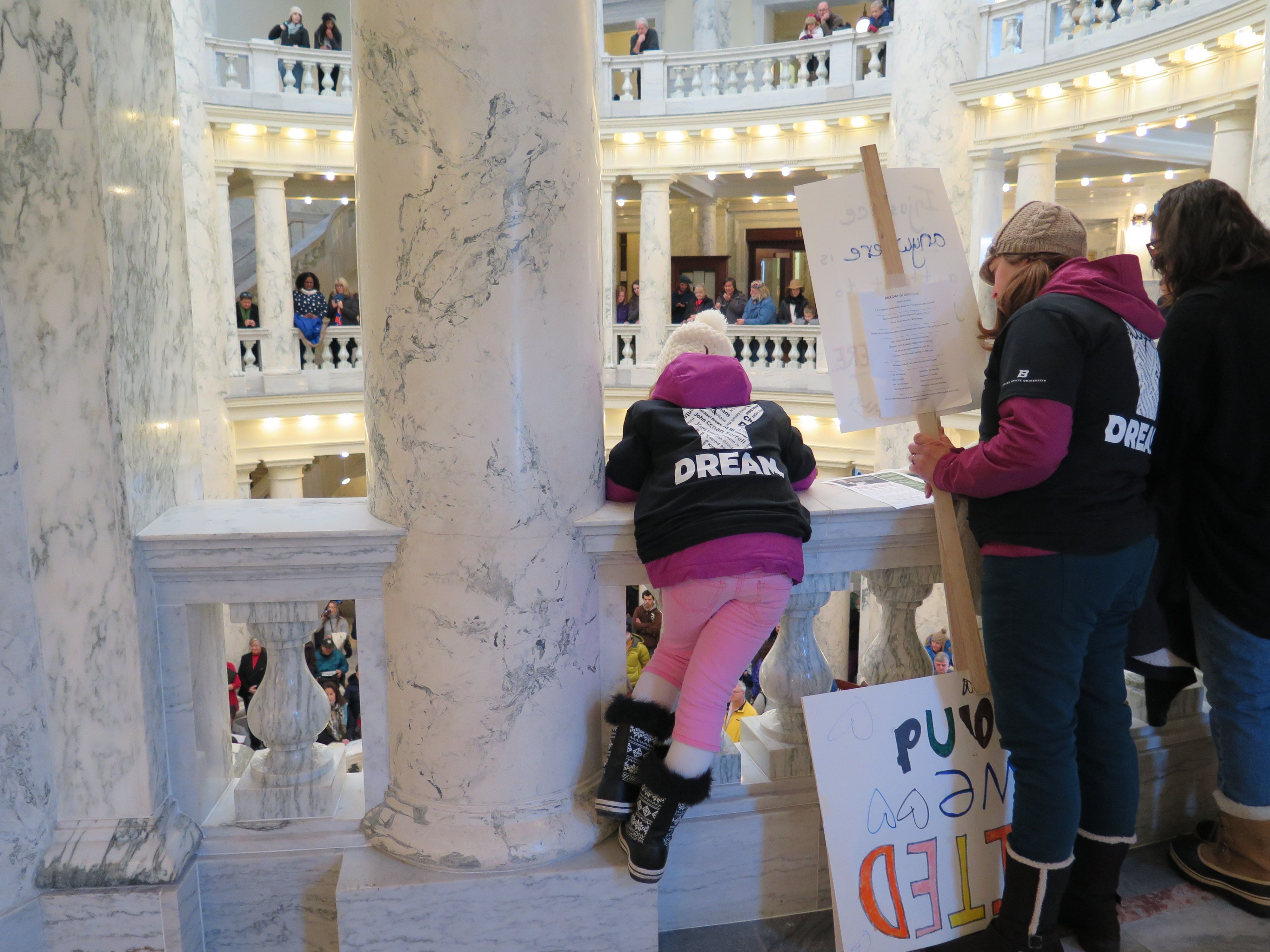 Several hundred people filled the Capitol rotunda today for the state’s official Martin Luther King-Idaho Human Rights Day ceremony, marking the state holiday. “Dr. Martin Luther King Jr. inspired millions of Americans to participate in non-violent demonstrations to support the ideals of equality for all, and was a motivating force behind the civil rights movement that had as its goal the creation of a society inclusive of all races, cultures and nationalities,” Lt. Gov. Brad Little told the crowd, reading an official proclamation from the governor declaring the holiday. “The ideas of Dr. Martin Luther King Jr. and Idaho’s commitment to human rights are worthy of reflection and serve as a reminder that improving the quality of life for all members of society is everyone’s responsibility.”