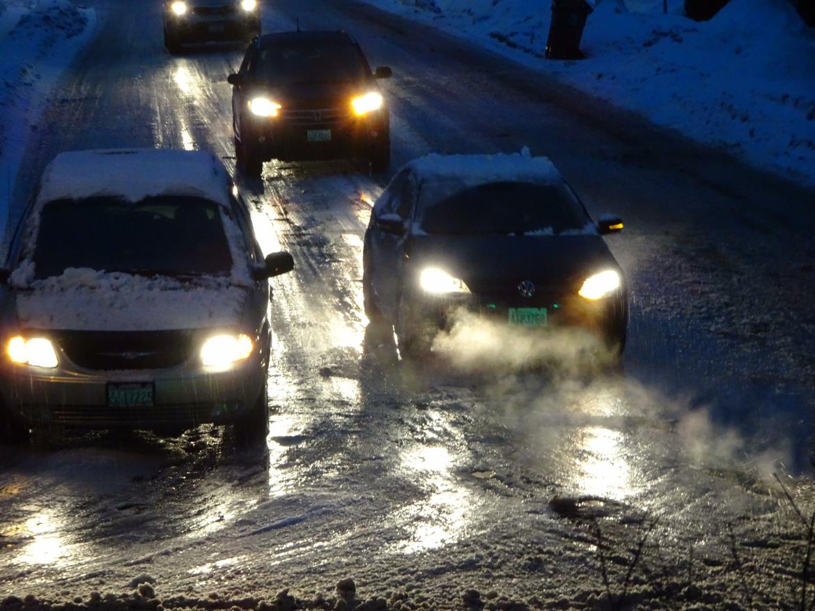 The pavement at 29th Avenue and Perry Street in Spokane was slick this morning. Story here. (Jesse Tinsley/SR photo)