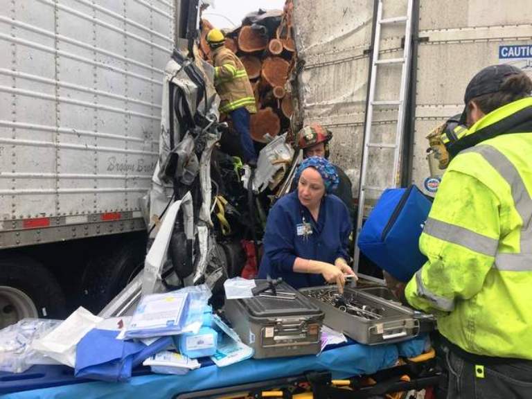 Kootenai Health medical team was called to the Interstate 90 crash near Rose Lake on Thursday to assist emergency first responders. Medical officials called this type of rescue “unprecedented” in Kootenai County. Story here. (Kootenai County Fire & Rescue courtesy photo via Coeur d’Alene Press)