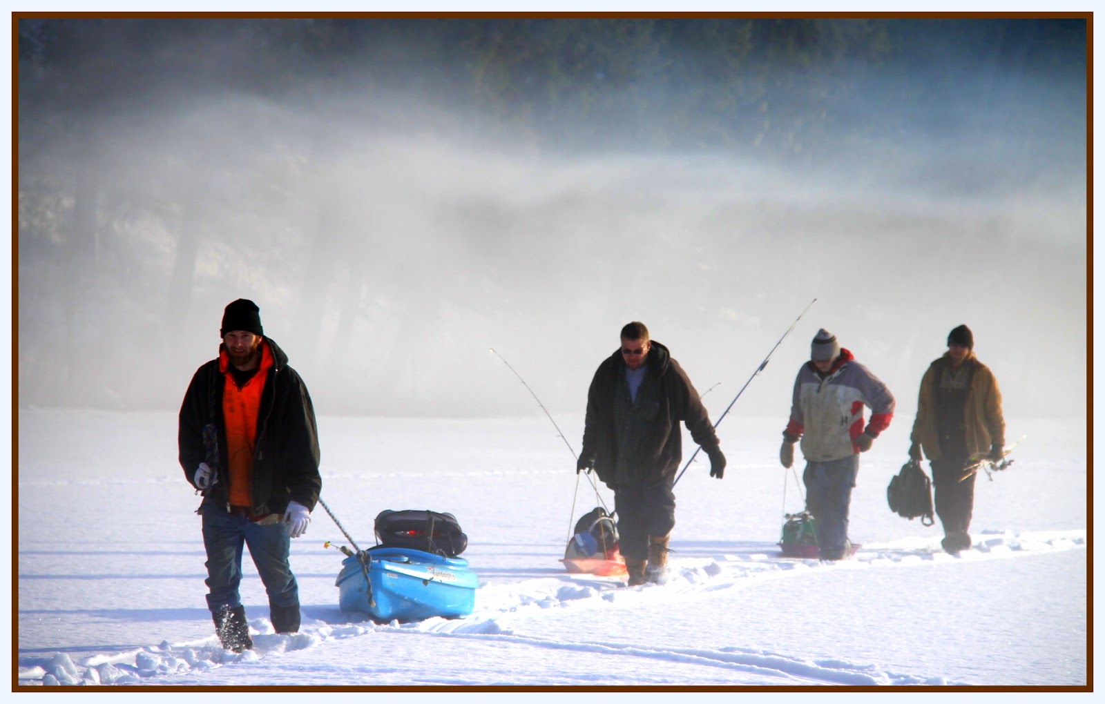 At Slight Detour, Marianne Love, hubby Bill and their dog Kiwi spotted ice fishermen from Boundary County coming off Dawson Lake, northeast of Bonners Ferry during a drive Sunday. Marianne has posted a bunch of swell, winter photos on her blog today. You can see them here.