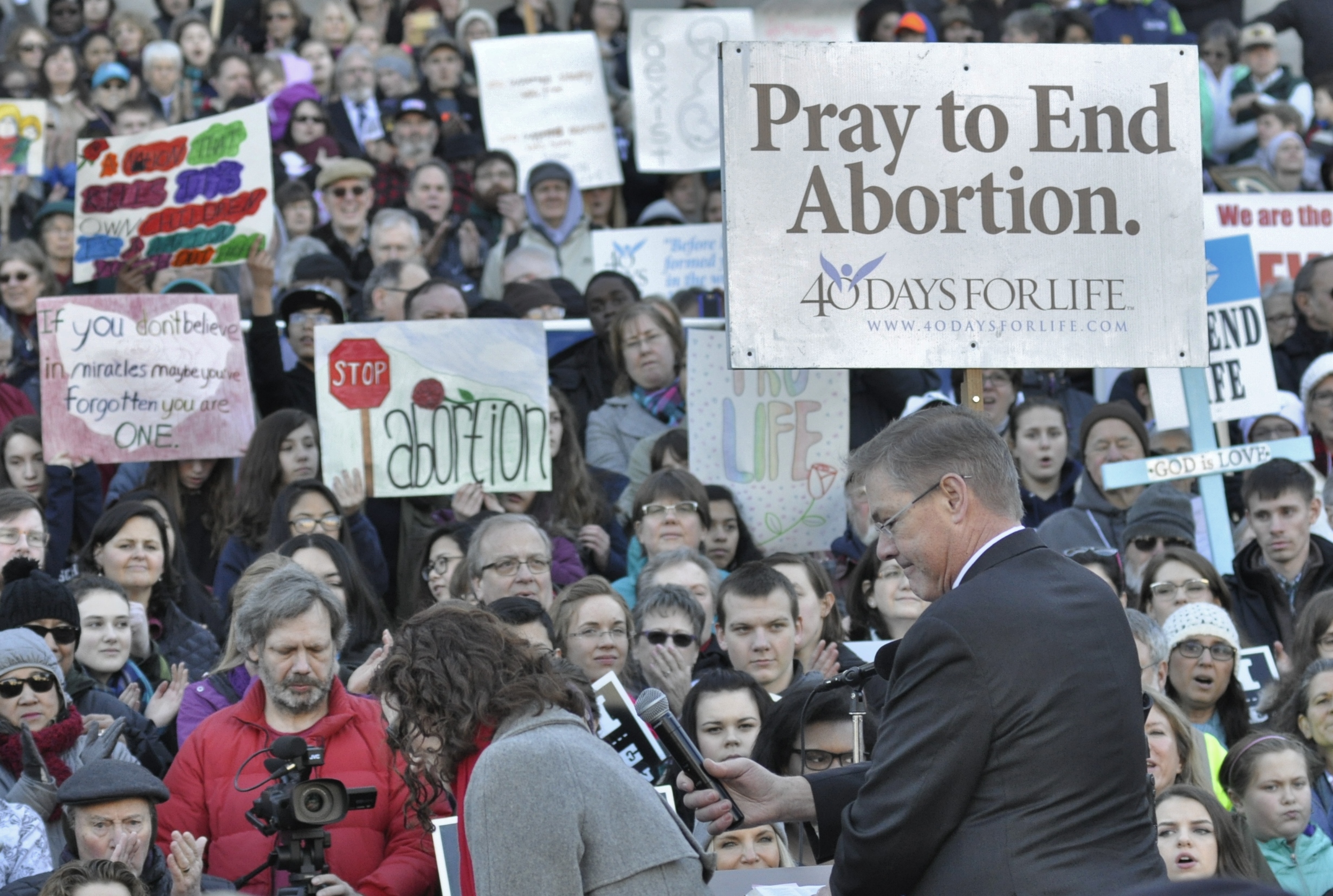“We need to move from prayer to action,” Rep. Matt Shea, R-Spokane Valley, told demonstrators after leading them in a chant of “Pro-life, Pro-life.”