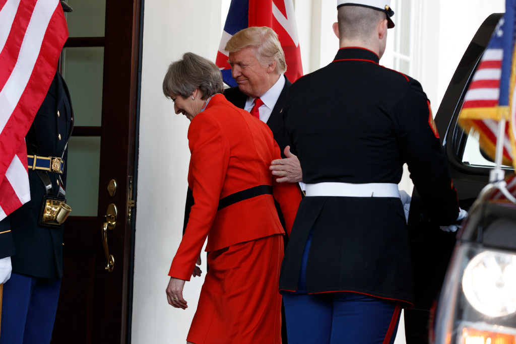 President Donald Trump welcomes British Prime Minister Theresa May to the White House in Washington today. You write the cutline. (AP Photo/Evan Vucci)