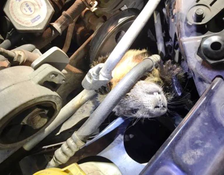 Tongue firmly cheeked, a Post Falls PD officer penned the following report re: a persistent stowaway who was found in an engine compartment at the Post Falls Walmart: