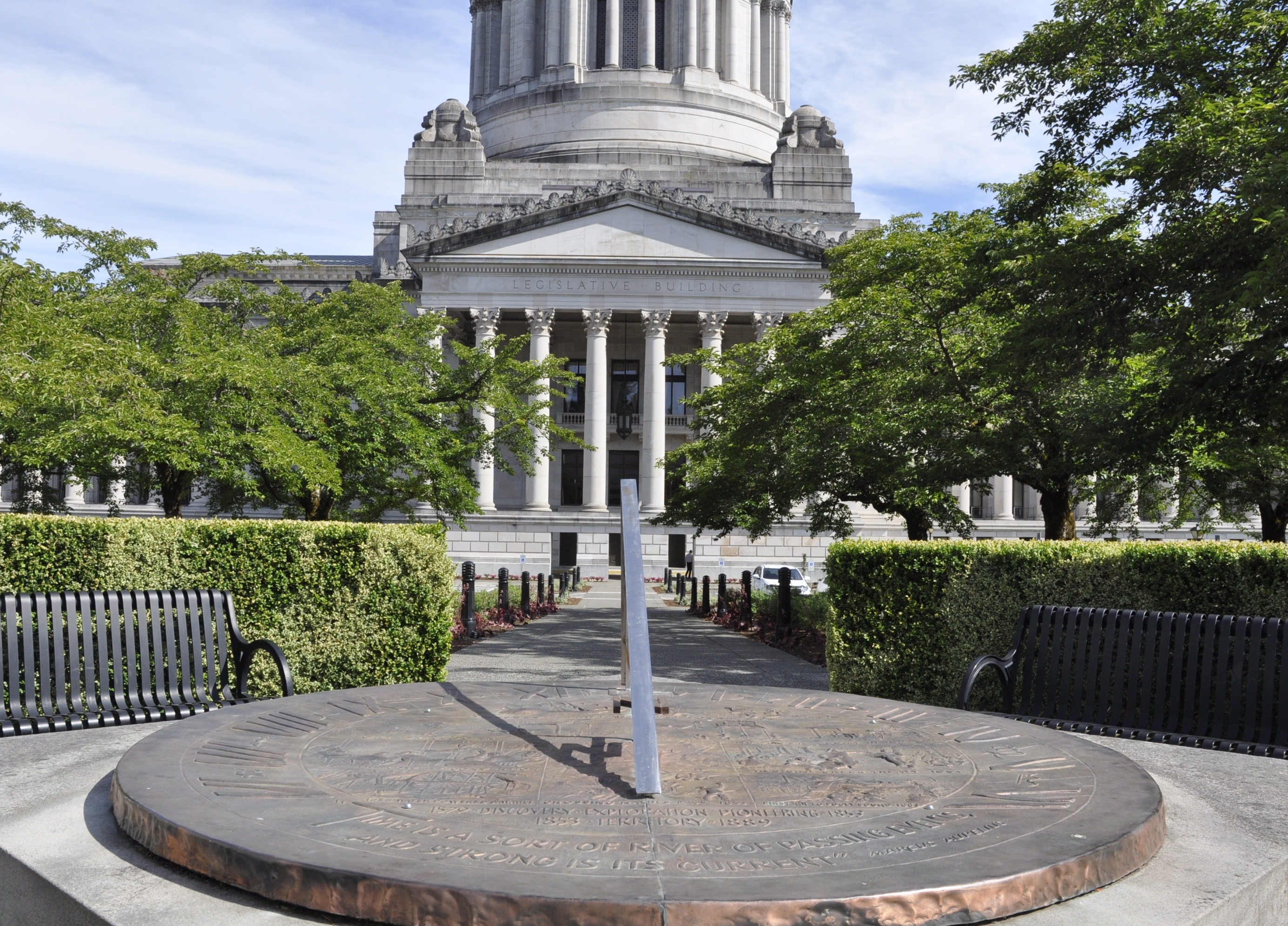 The sundial may not be the most recognizable feature on the Capitol Campus, but it may be the most frequented, particularly during a legislative session. It rests halfway between the Senate and House office buildings, which are the sites of most legislative hearings, with a view of the domed Legislative Building’s south entrance on one side and the Joel Pritchard Library, home to many lobbyists, on the other.