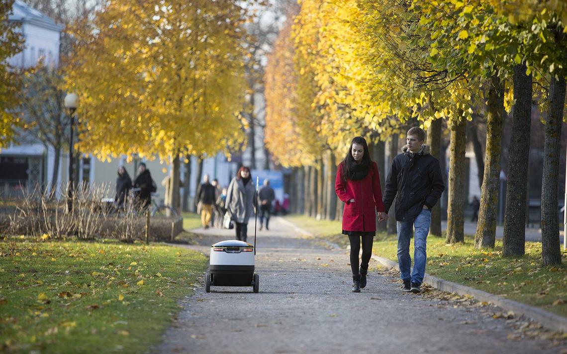 This Starship Technologies photo shows one of the company’s personal delivery robots en route to a delivery. Betsy Russell/EOBoise story here. (Starship Technologies Inc.)