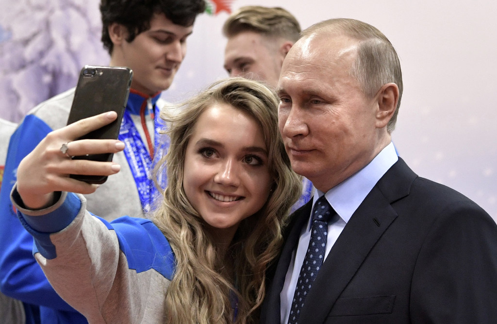 President Vladimir Putin, right, poses for a selfie during a visit to the Academy of Biathlon in Krasnoyarsk, Russia on Wednesday. You write the cutline. (Alexei Nikolsky/Sputnik, Kremlin Pool Photo via AP)
