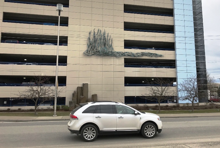 The design on the side of the new parking garage at Kootenai Health, near the Emergency Room entrance, caught my eye this morning. It looks nice. I guess. But what is it? Anyone care to guess?