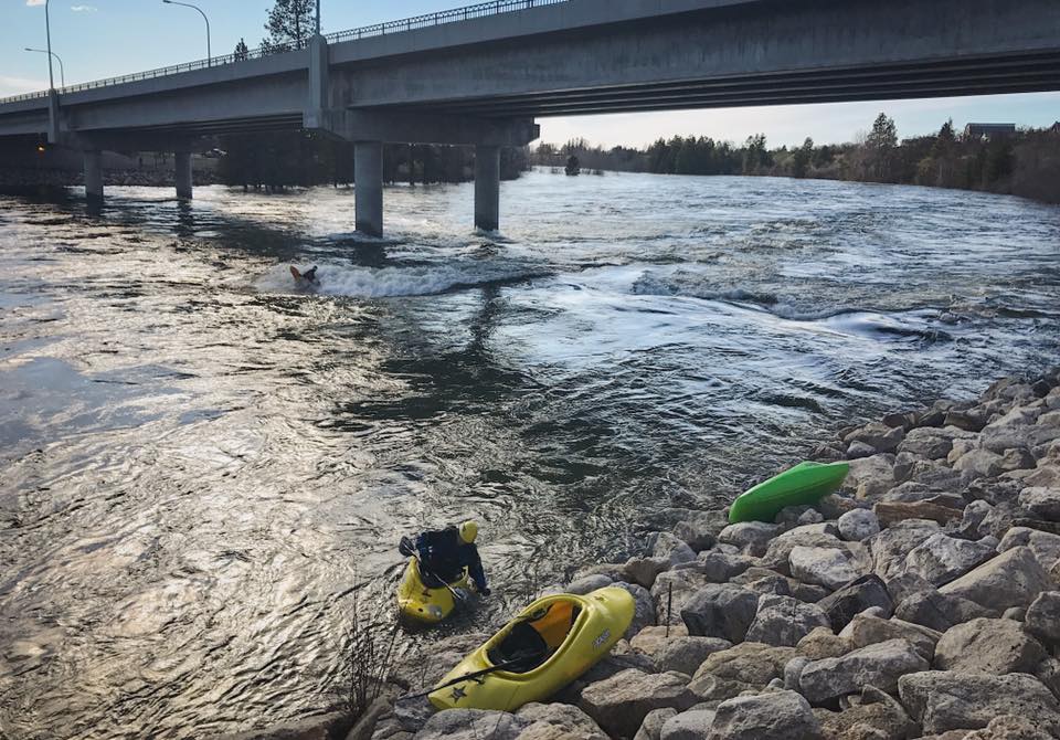 WATERSPORTS — Expert kayakers relished the high Spokane River flows last week to play in Dead Dog Hole at the state line.