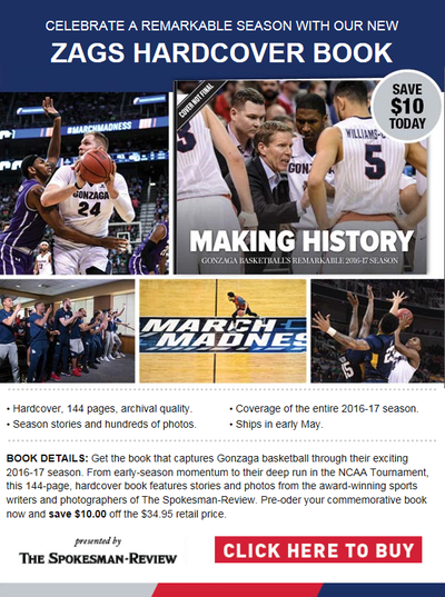 The Spokesman-Review has produced a 144-page book that captures Gonzaga basketball through its exciting 2016-17 season. From early-season momentum to the Zags’ deeprun in the NCAA Tournament, the hard-cover book features stories and photos from the award-winning sports writers and photographers of The Spokesman-Review. Pre-order a commemorative book now and save $10 off the $34.95 retail price. Click here to order.