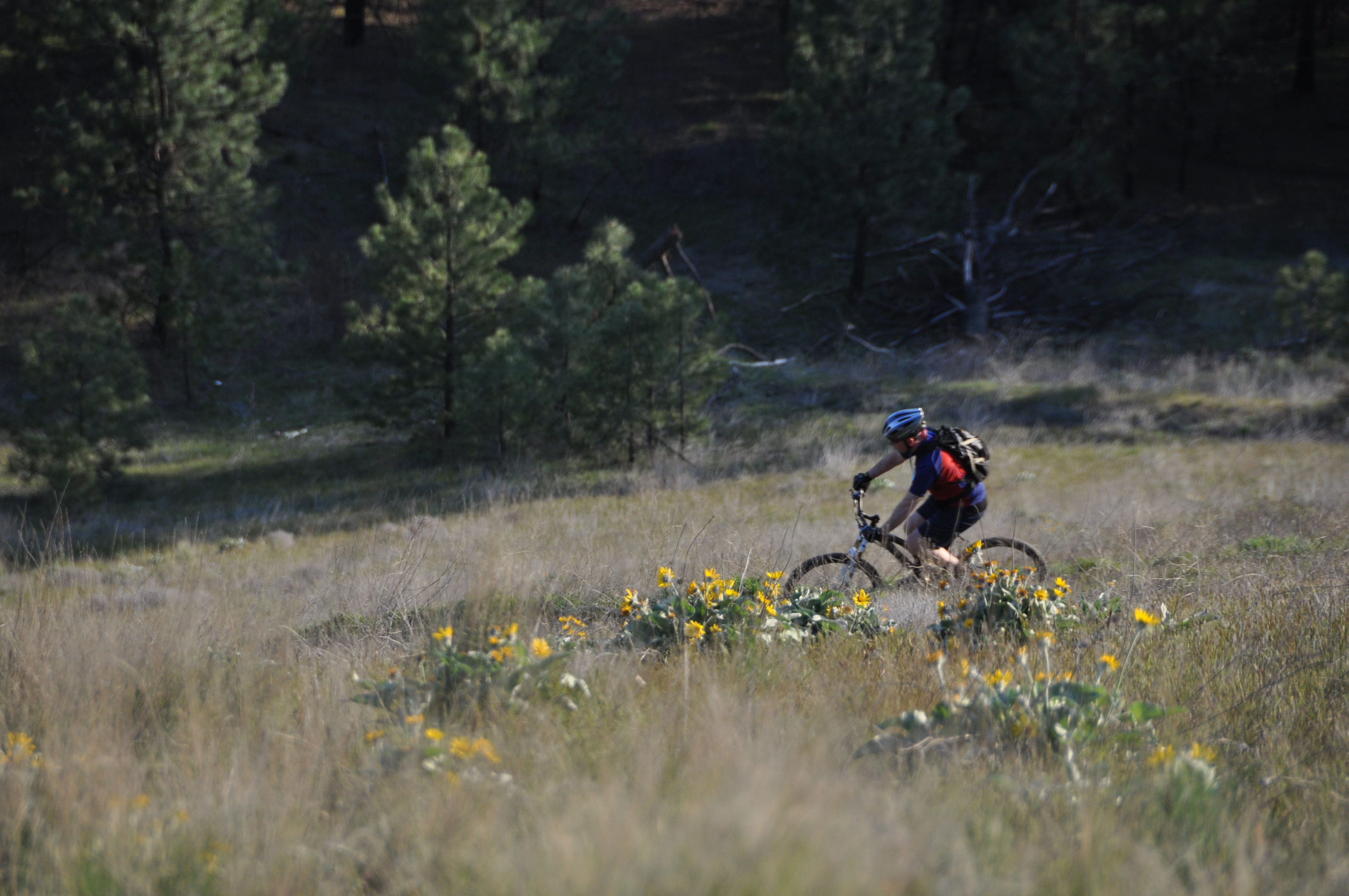 - Nate Hutchens , trail builder with Evergreen East Mountain Bike Alliance, speaking on how the club strives for single-track trail nirvana in Eastern Washington.