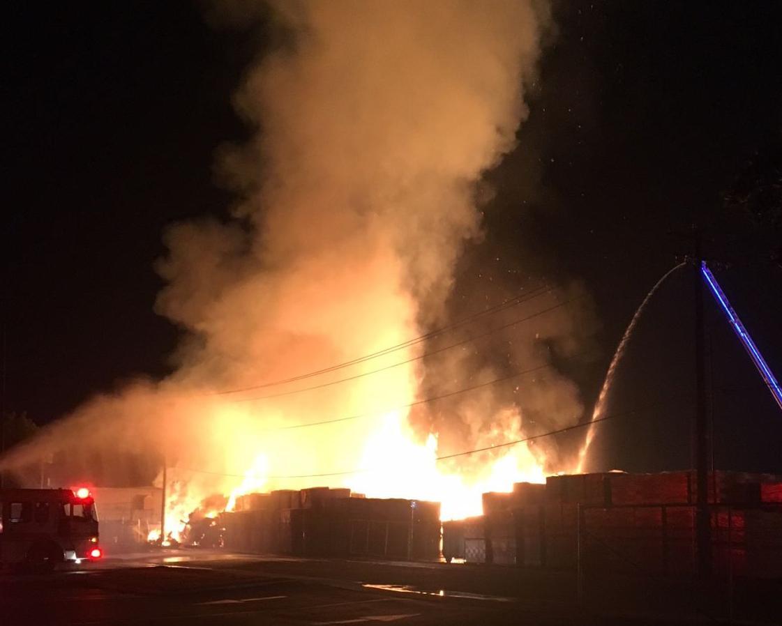 YAKIMA, Wash. – The Yakima Fire Department finished mopping up hot spots at Fruit Packers Supply Inc. on Sunday, where the day before a fast-moving fire destroyed two steel buildings, a pair of semi-trucks and multiple stacks of cardboard packing material and boxes.