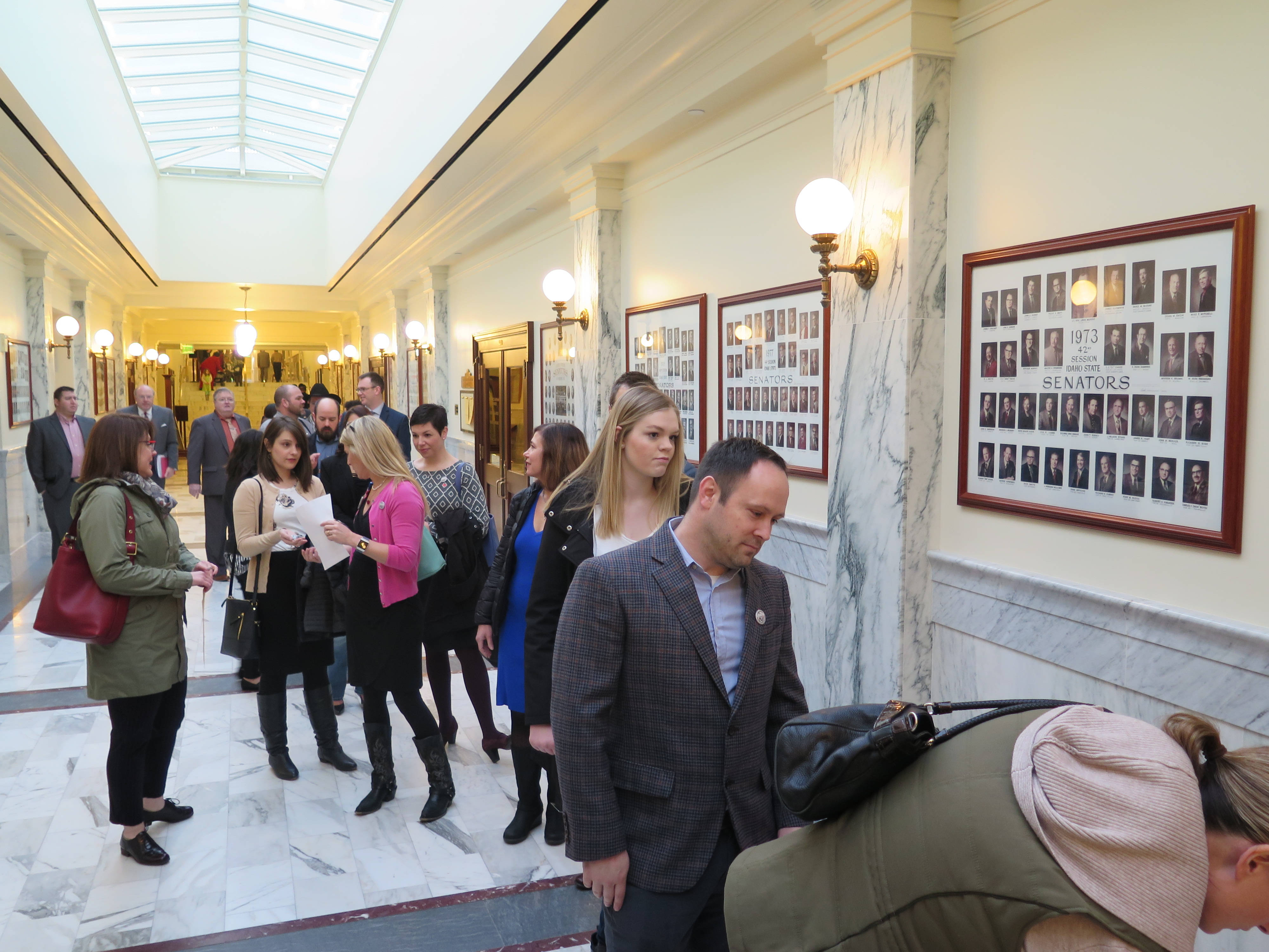 There’s a long line of people stretching down the Capitol hallway this morning to sign up to testify at the hearing this morning on SB 1255 , Sen. Fred Martin’s bill to raise the smoking age in Idaho to 21. You can listen live here .