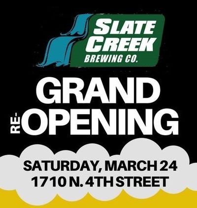 – Slate Creek reopens under new ownership with a grand opening party from 2 to 10 featuring the house-brewed 6 Weight IPA plus 10 guest taps, along with food from the Las Brasas Mexican Grill truck and music in the parking lot from 6 to 8 by The Powers.
