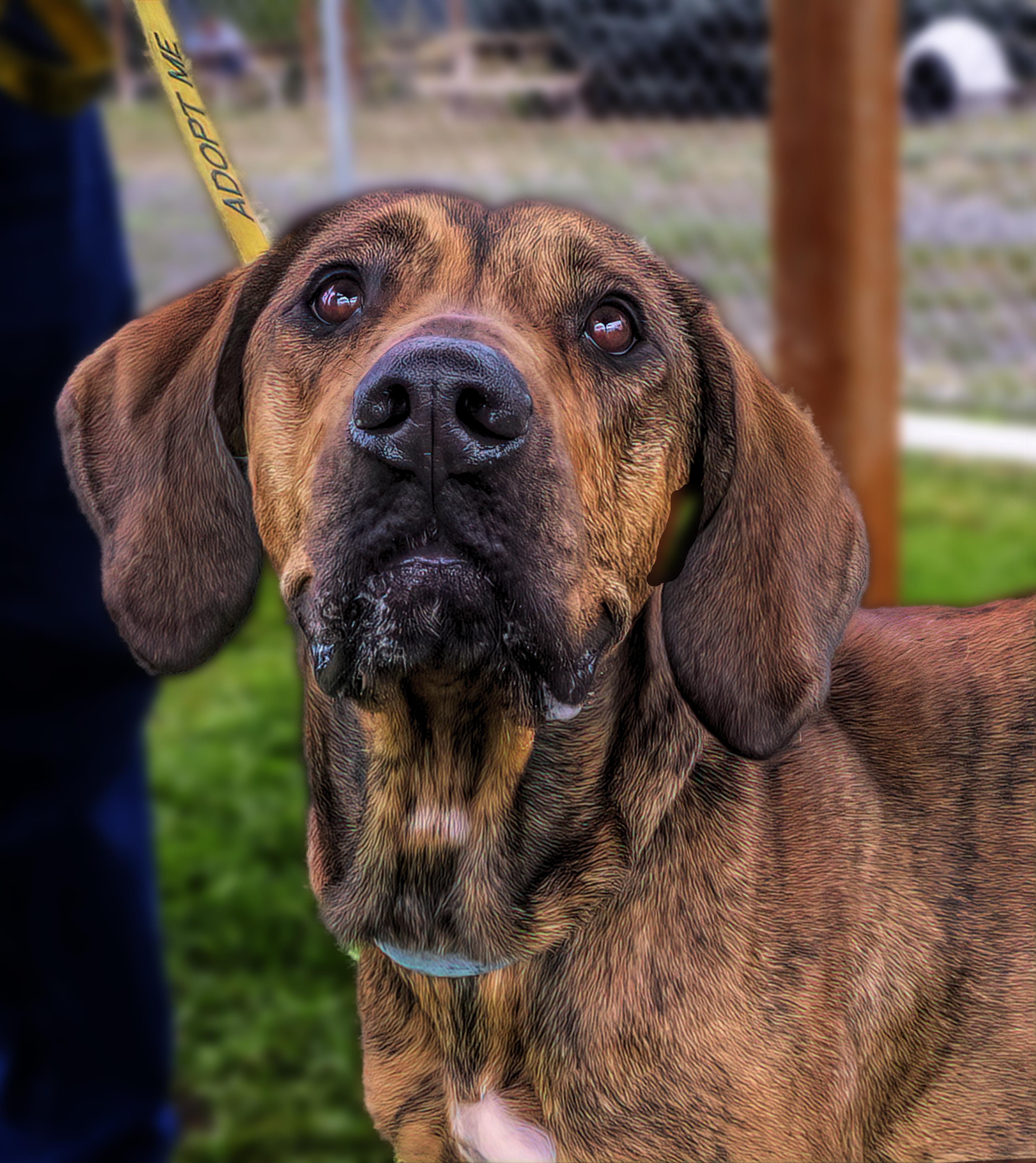 Artimus, a red and brindled hound-mixed breed dog, is available for adoption at the Spokane County Regional Animal Protection Service.