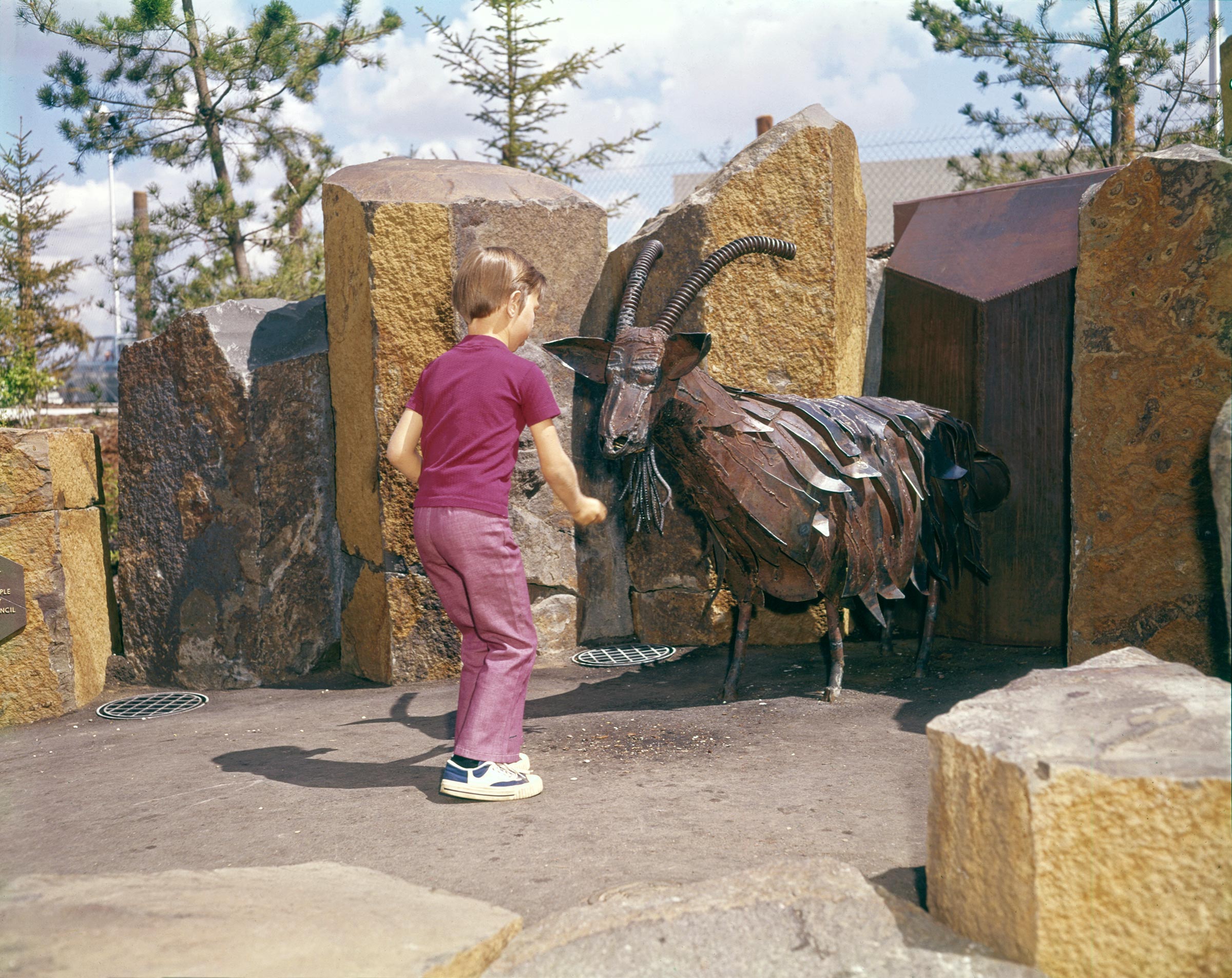 The Women’s Council of Realtors sponsored a trash can in the form of an iron goat, sculpted by Sister Paula Turnbull of Fort Wright College. A recording would ask for your garbage. The goat would then suck down the trash via a powerful vacuum system. Not baa-aad.