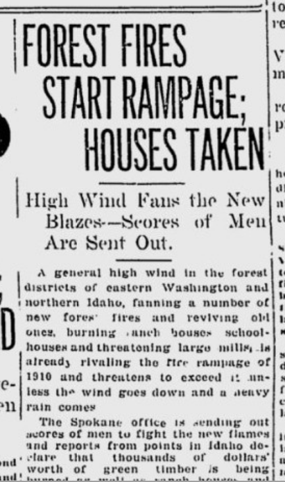 Some of the worst wildfires since 1910 threatened ranch houses, schoolhouses and lumber mills in the Pend Oreille and Newport areas.
