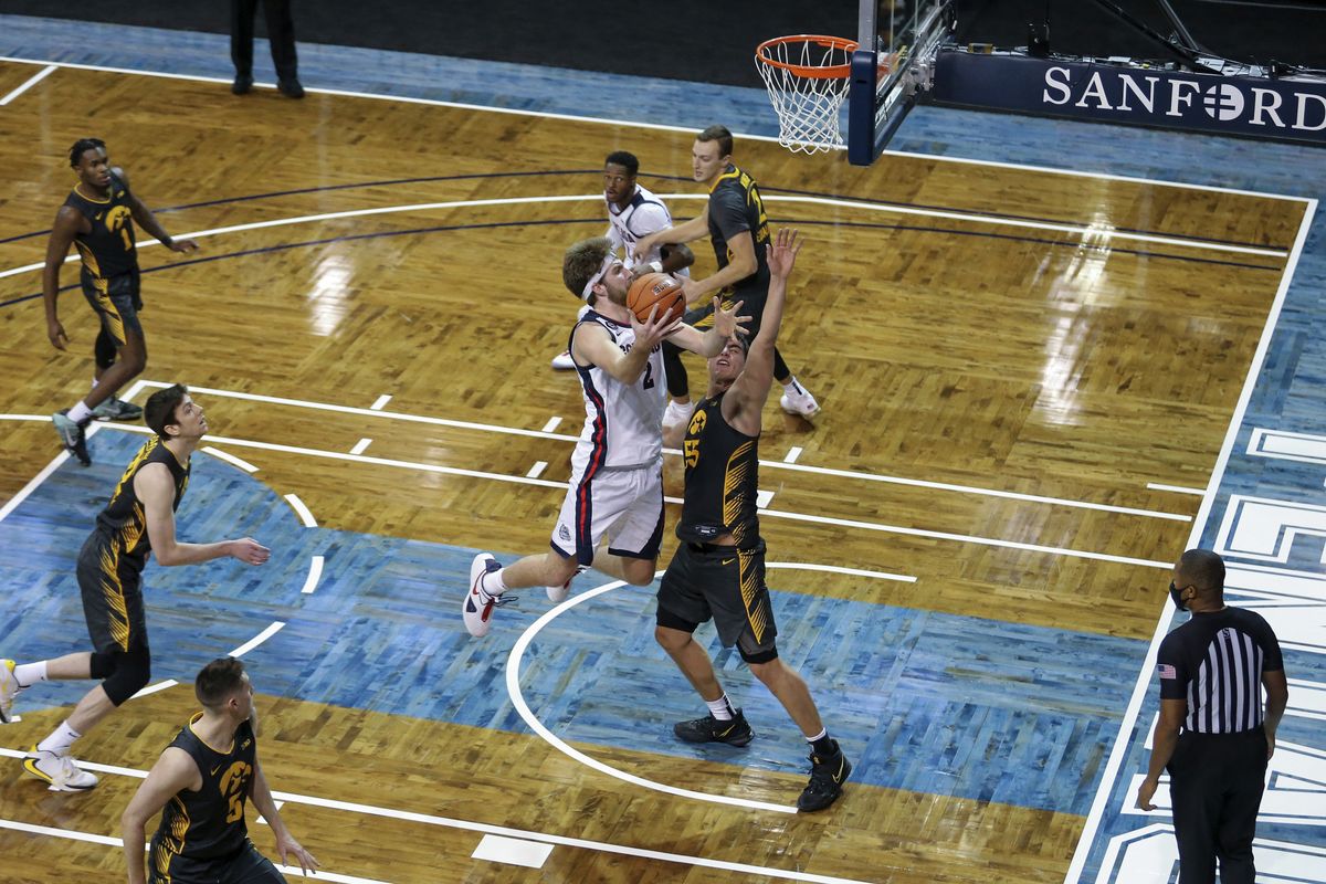 • We’ll start where the day did, with No. 1 Gonzaga shaking off the rust of a coronavirus-induced layoff and rolling over third-ranked Iowa in, of all places, Sioux Falls, S.D. It was, for the most part, offensive – though in a good way.