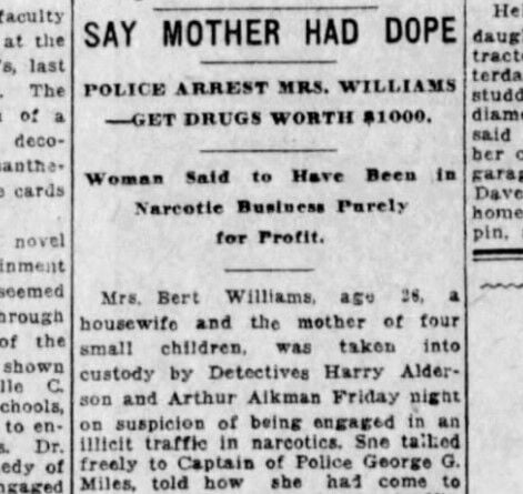 Mrs. Bert Williams, 26, mother of four, told police how she had become one of the leading dope distributors in Spokane.