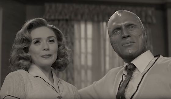Above : Elizabeth Olsen and Paul Bettany star in “WandaVision.” (Photo: Disney Studios)