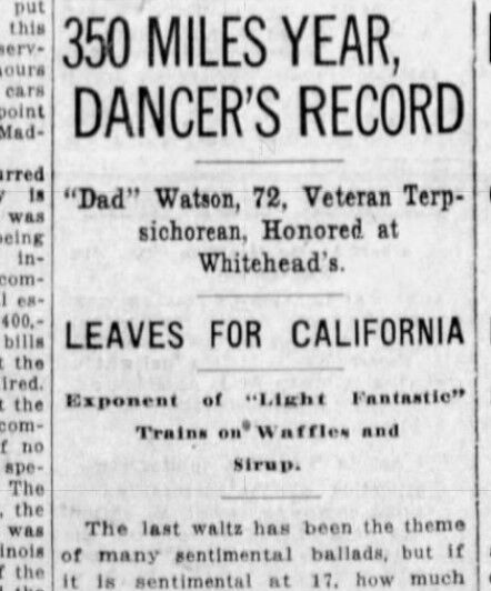 “Dad Watson’s sinews of waltzing were achieved by consuming waffles,” The Spokesman-Review wrote. “After dancing each evening, he made it a point to eat several waffles and a few pitchers of syrup.”