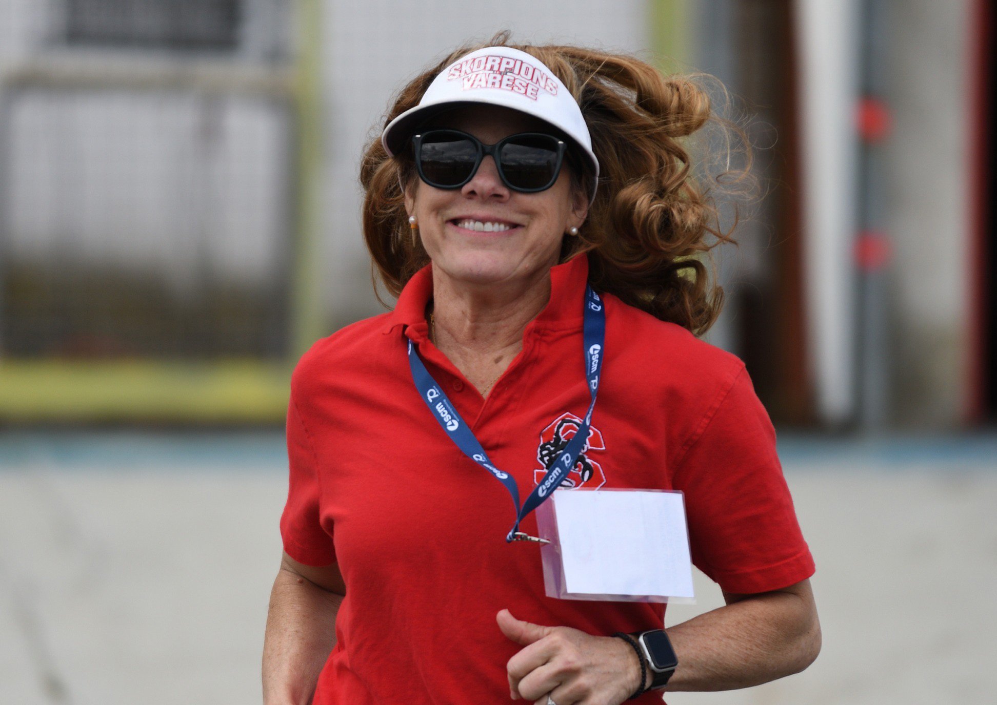 The Varese Skorpions website lists Julie Holt as “assistant coach.” Her husband calls her director of football operations. Julie says her job is more “director of Nick.”