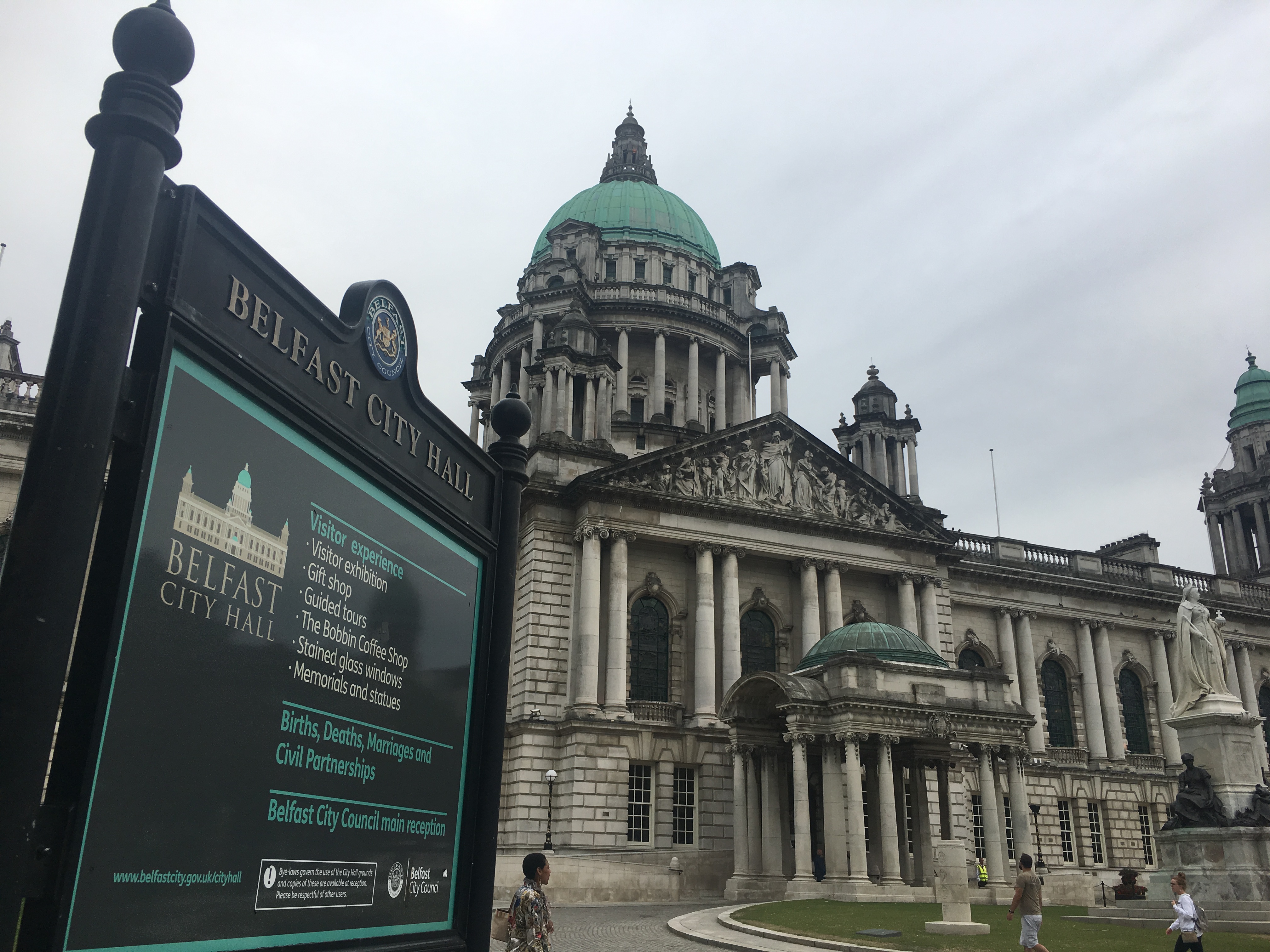 Among the 19 or so sights we passed by: Titanic Belfast, St. George’s Market, the so-called Solidarity Wall, the Peace Wall and the famous Belfast City Hall.