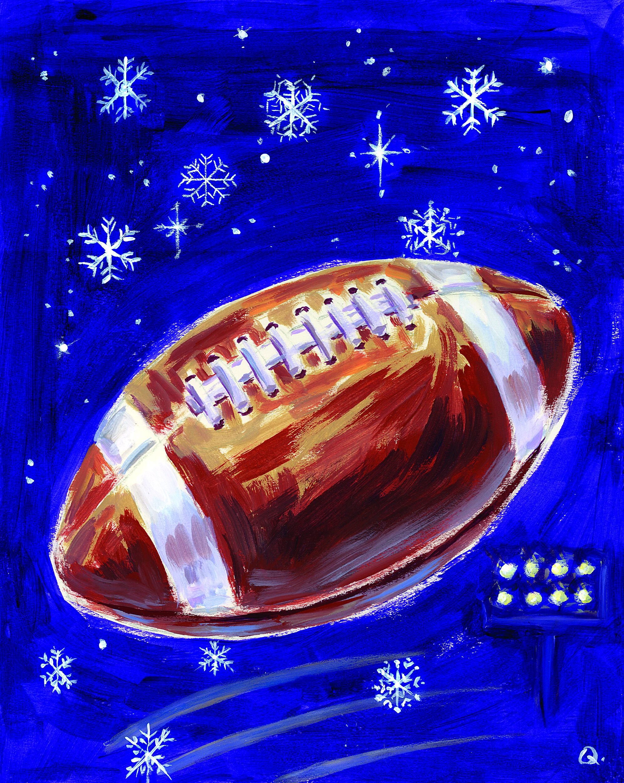 In my dreams, though, I see drifts of snow that are deep and blue enough to bury the moon. These are dreams of boyhood, the gang of neighborhood miscreants who defined it. Back then it took a couple feet of snow to get us out of school (this the era when kids learned about closures from a ticker on the local news), and when that happened, we played football every day.