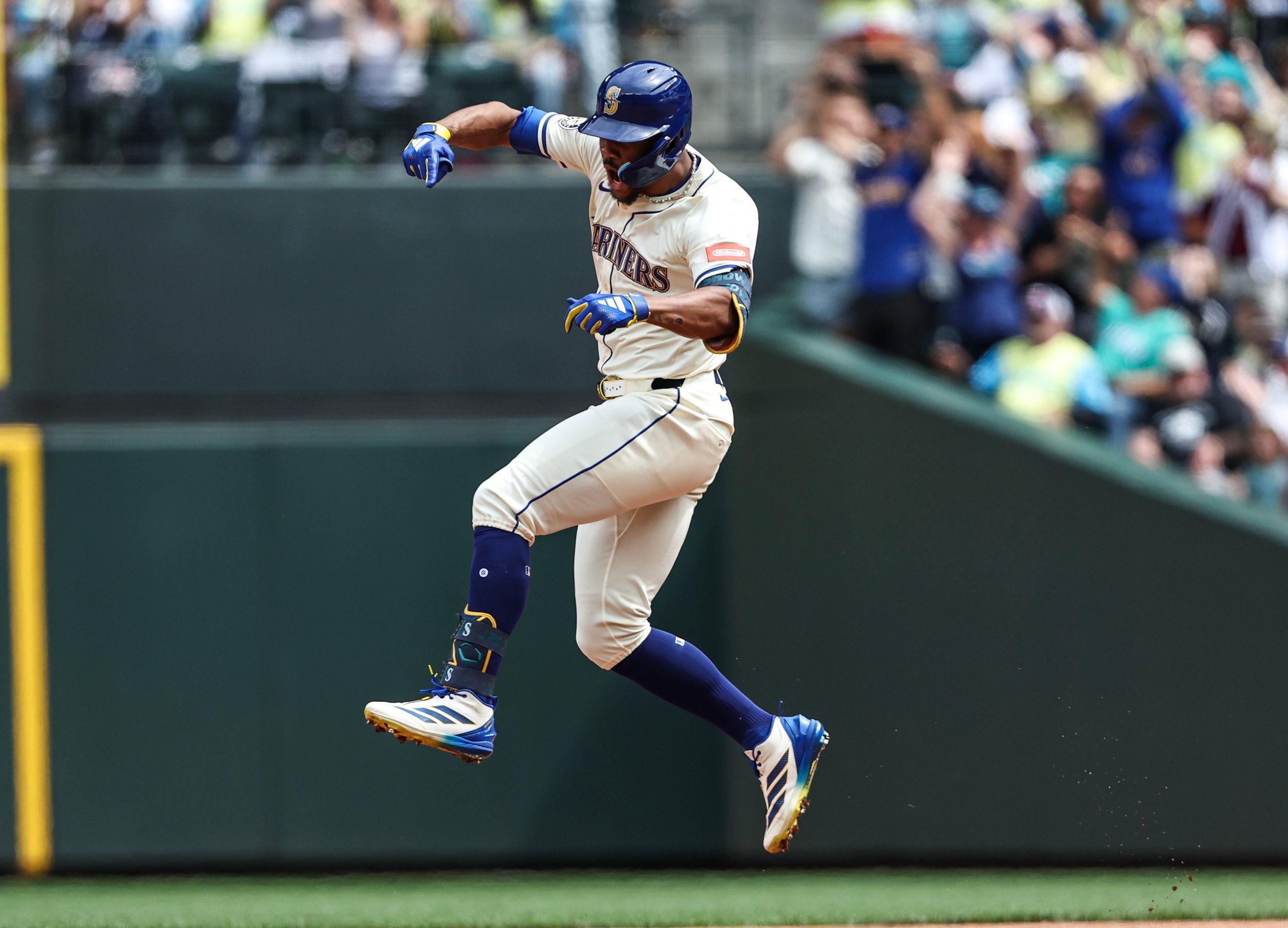 See, if the default view was “Julio has done so much already” instead of “Why, Julio, why?” than all of us might appreciate the esoteric record he set Sunday. With a home run and a stolen base in the M’s key 5-4 win over visiting Texas, the centerfielder accomplished something no other MLB player ever has.