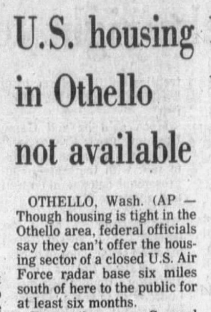 Those homes had been used as housing on the former Othello Air Force Station outside of Othello. Now, the federal government said the homes would not be available for sale for months.