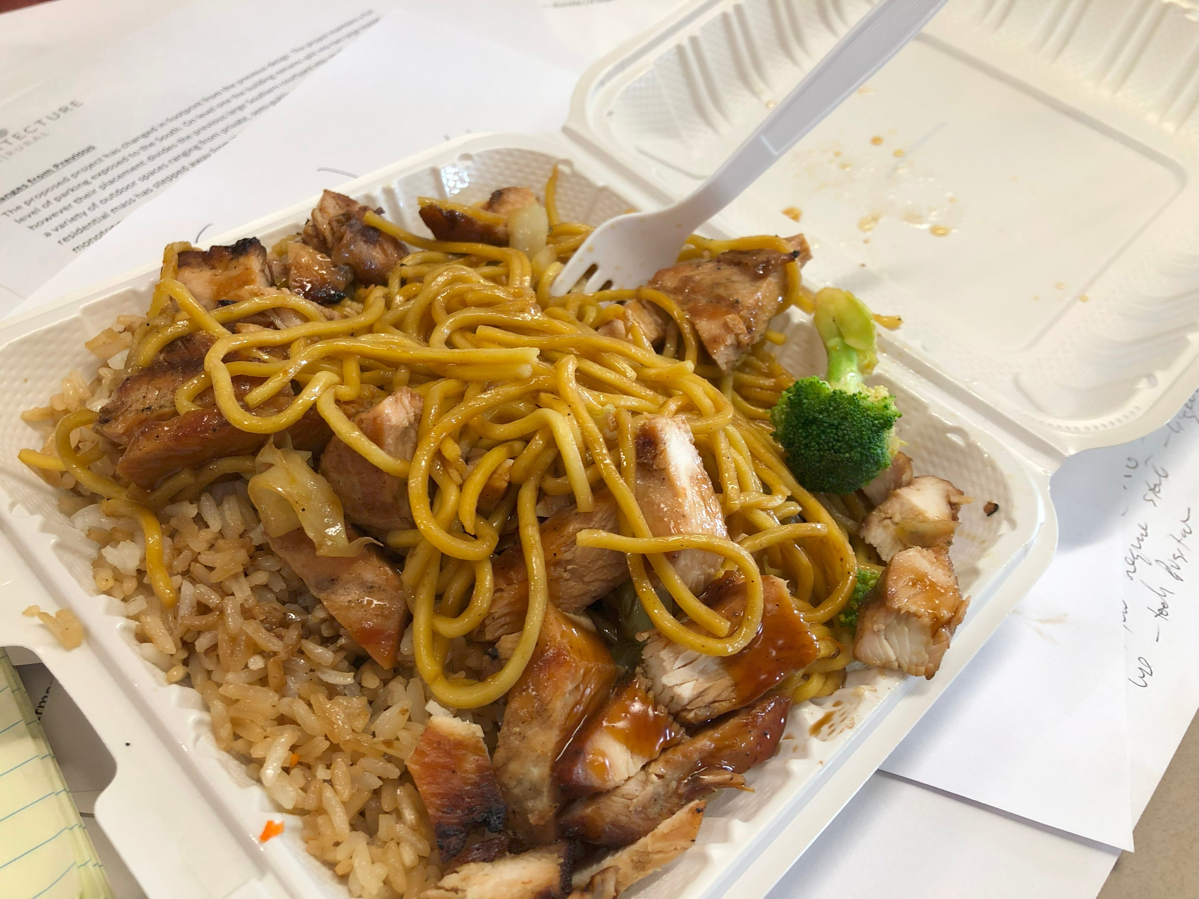 The Number 1: teriyaki chicken with stir-fry noodles, rice and vegetables, which runs $18. It offers an ample supply of noodles and grilled chicken that does not disappoint.