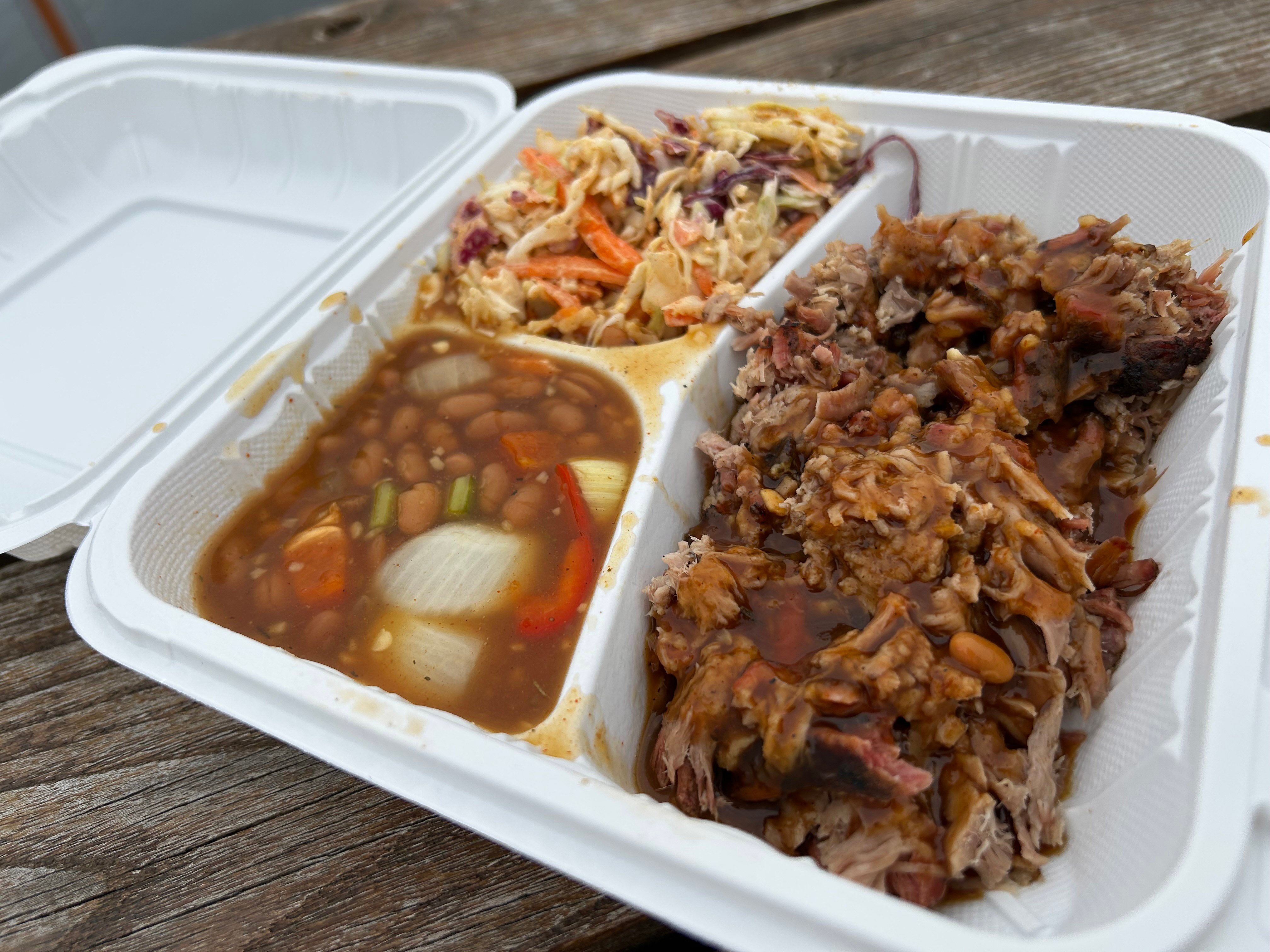 It didn’t come with any sides, such as beans or coleslaw, which is reserved for the pulled pork sandwich.