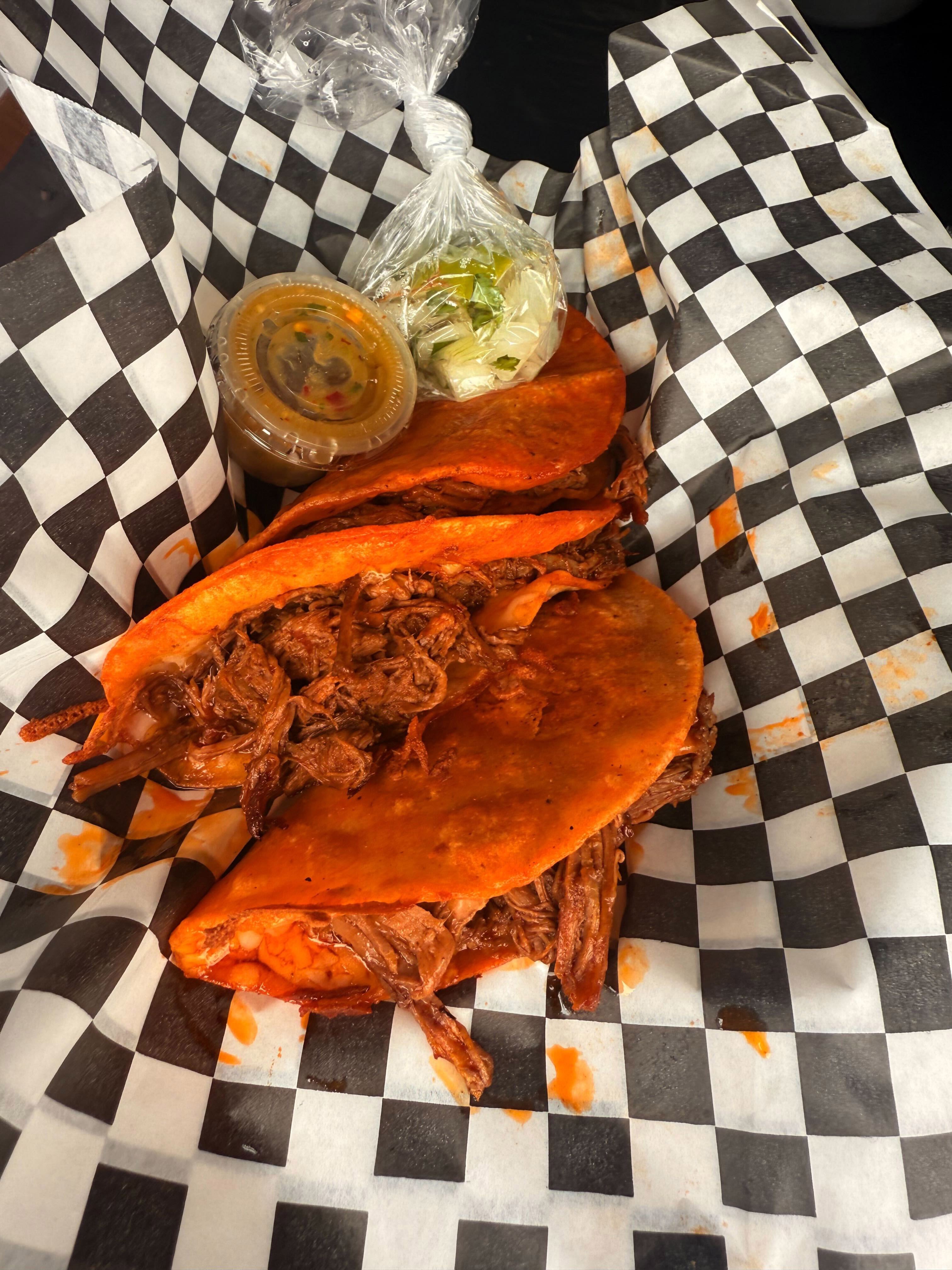 A TikTok and Instagram favorite from Whittier, California, Las Chelaguas lives up to the hype. They were out of their famous birria tortas – presumably because that’s what everyone wanted – but the three birria tacos did not disappoint. It was juicy and cheesy, the meat was marinated in all the best ways, and the staff was friendly.