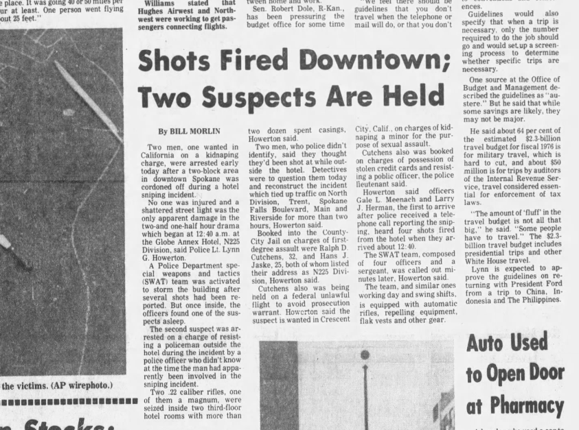 From 1975: A two-block area of downtown was cordoned off after at least four shots were fired in the vicinity of the Globe Annex Hotel, 225 N. Division.
