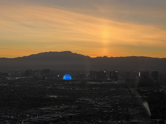 Our return to Vegas, which was highlighted by the glow of The Sphere in the distance, was even more dramatic as we swept over The Strip – still clicking photos with our phones – as it lay there in the fading light.