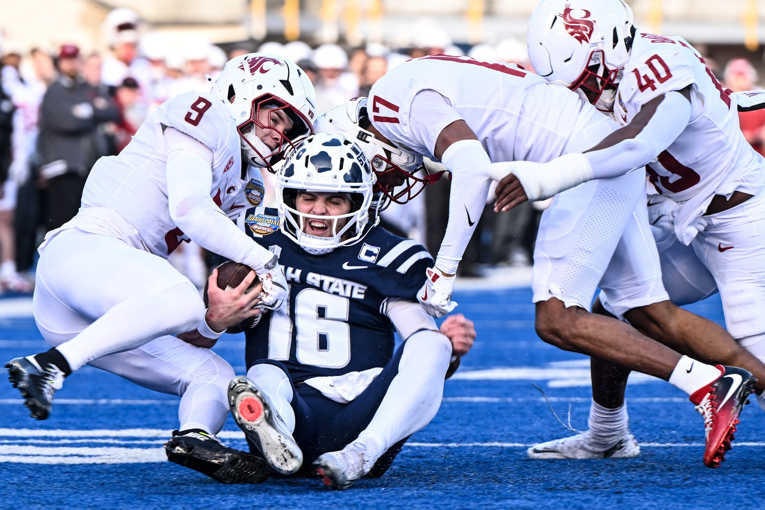 WSU: Greg Woods was in Boise for the bowl game. Wrote a couple stories about the outcome, including an analysis of how it happened. … Greg also wrote about the emergence of the young Cougars who helped fuel outstanding performances on both sides of the ball. … Dave Boling watched from home and wrote this analysis of what the game meant for the two future Pac-12 foes. … Tyler Tjomsland was on the blue turf, allowing him to put together this photo gallery. … There was basketball news yesterday as well, with WSU’s Ace Glass named the WCC’s freshman of the week. … Back to the bowl game. Utah State wasn’t pleased with the outcome but the first season under Bronco Mendenhall was OK. … Elsewhere in the (current, old and future) Pac-12 and the nation, Washington had a good season. But maybe not as successful as some hoped. … Oregon has been successful in all but one game. The Ducks are headed to Miami for the CFP quarterfinals to face Texas Tech. It’s the game’s location that bothers Dan Lanning. He actually thinks it would be better for the game if his team had to play in Lubbock. … The end of a rivalry? L.A. Times’ columnist Bill Plaschke points his finger toward Notre Dame and rings the bell of shame. His L.A. Daily News counterpart Jim Alexander puts the blame on the Trojans’ shoulders. … UCLA’s new coach Bob Chesney is bringing two coordinators with him from James Madison. He will also have the advantage of a seasoned quarterback coming back. … Arizona State’s longest-tenured player is looking forward to the Sun Devils’ bowl game. … Arizona has made some staff changes. … Boise State enjoyed hosting a Pac-12 showdown of sorts on its home field. … San Diego State received some good news on the roster front. … Colorado State heard the opposite.