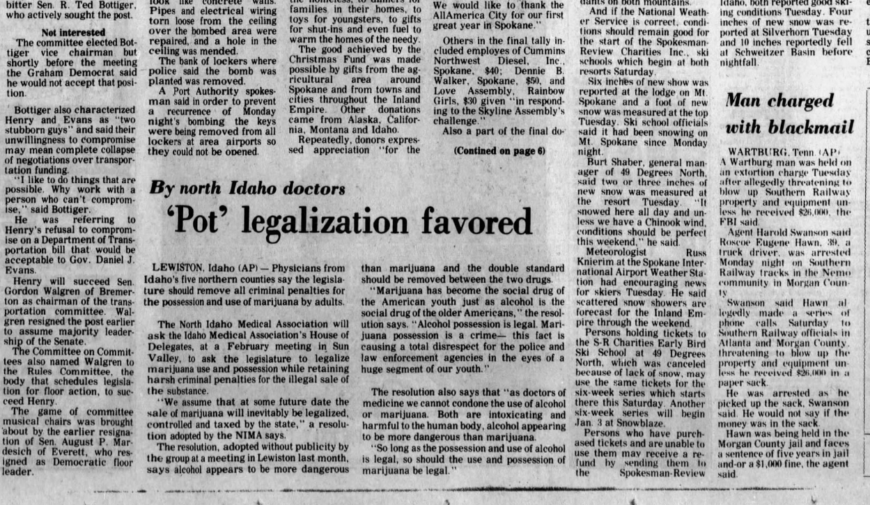 From 1975: The North Idaho Medical Association went on record as advocating the legalization of marijuana.