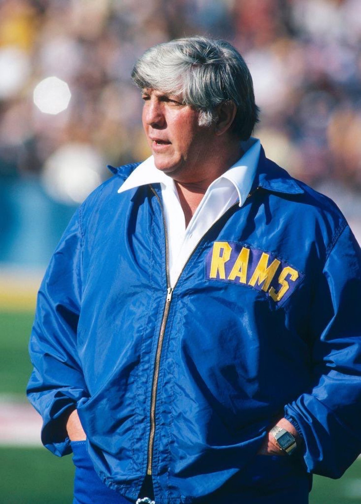 • After the mud-bowl loss, Knox abandoned ship. Signed on in Buffalo, where the weather in December was an advantage, not a curse. Ultimately, turned the Bills around. He was replaced by L.A. defensive coordinator Ray Malavasi, who did two things in his brief tenure as Rams head coach. He took the Rams to the Super Bowl in his first season, defeating the Vikings 34-10 in the process, and, a couple years later, fell asleep while on hold for his weekly radio show. Robert W. Morgan’s ensuing one-sided interview – he would ask questions, such as “what do you think of the Rams’ offense?” and the only answers were Malavasi’s loud snores – made Malavasi a laughing stock and ultimately contributed to his dismissal. Until later …