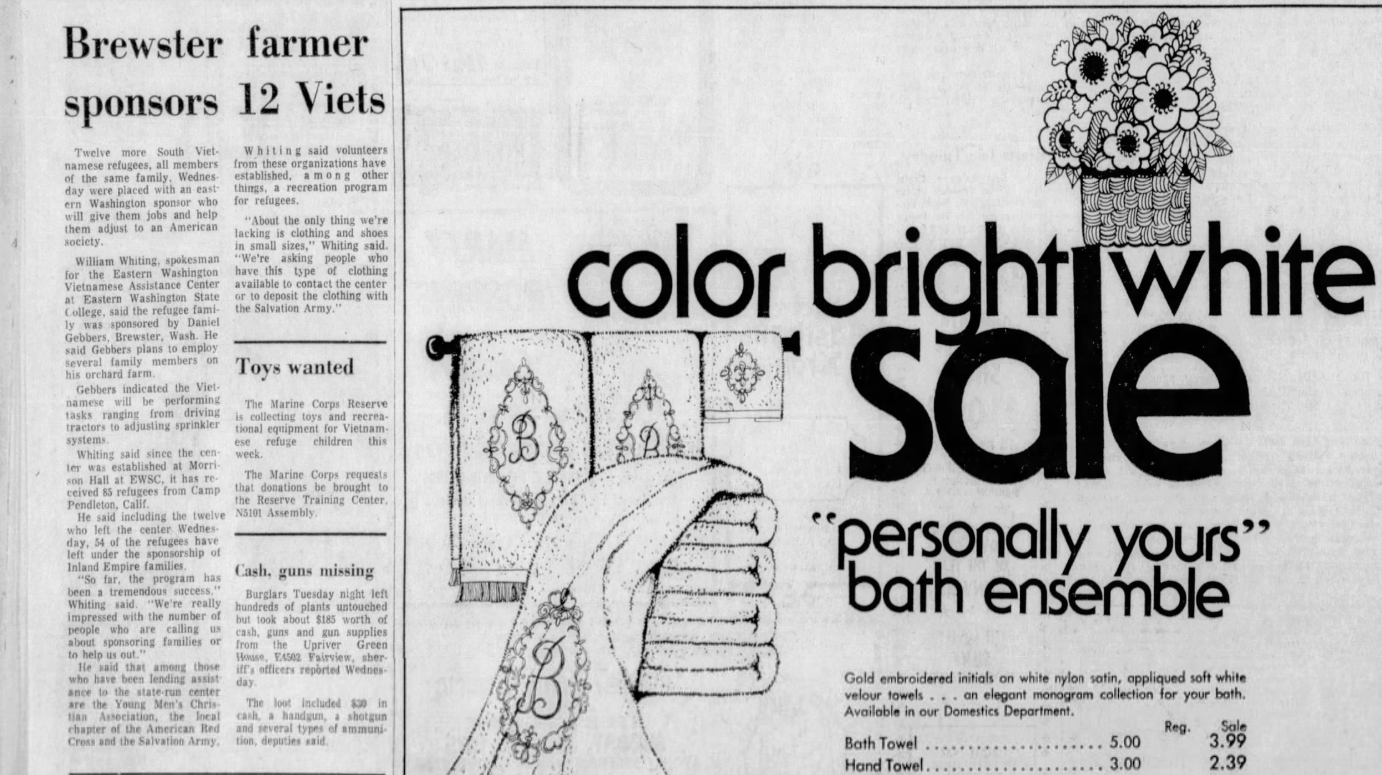 From 1975: The influx of South Vietnamese refugees continued as a Brewster, Washington, farmer sponsored 12 members of the same family.