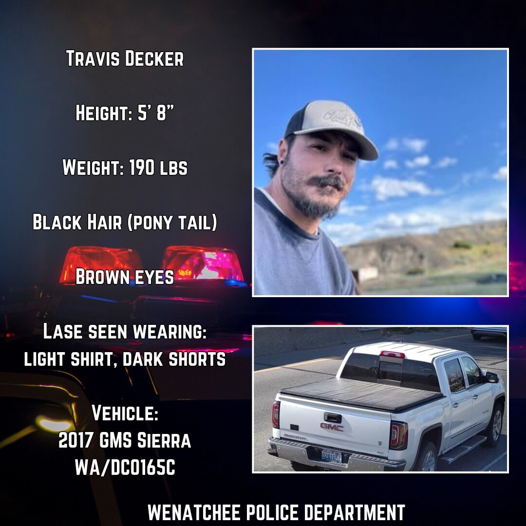 Law enforcement is asking for help finding Travis Decker. He was last seen wearing a light-colored shirt with dark shorts, has black hair and brown eyes, is 5 -foot-8 and weighs about 190 pounds. Travis Decker may pose a risk if he is approached, police said in a release. If found, call 911 immediately.