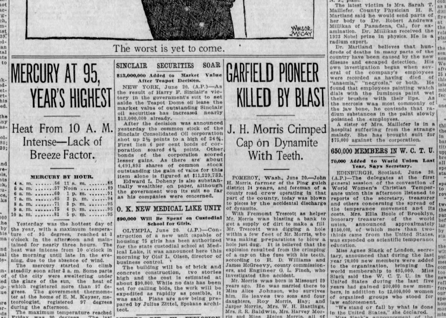 From 1925: A longtime Garfield County man was working as the foreman of a county road crew when he was getting ready to blast a bank of dirt with dynamite.