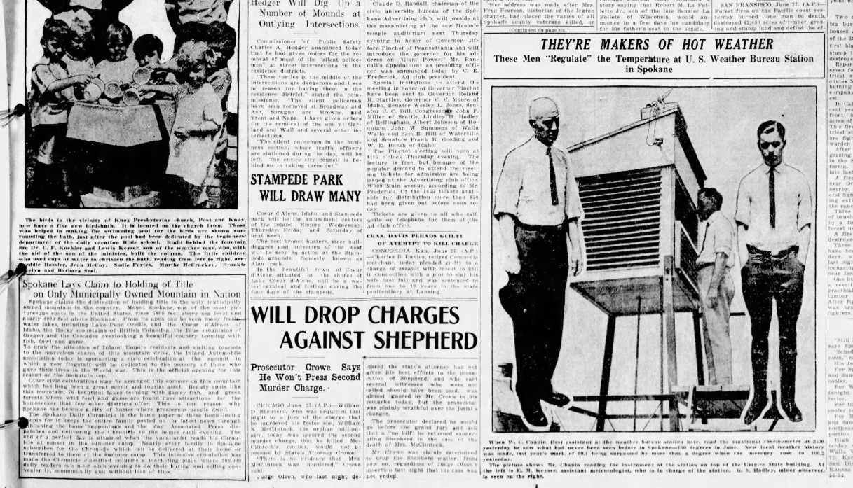 This day in history: Flowers dropped from planes onto Mount Spokane to celebrate new flagpole dedicated to those who died fighting World War I