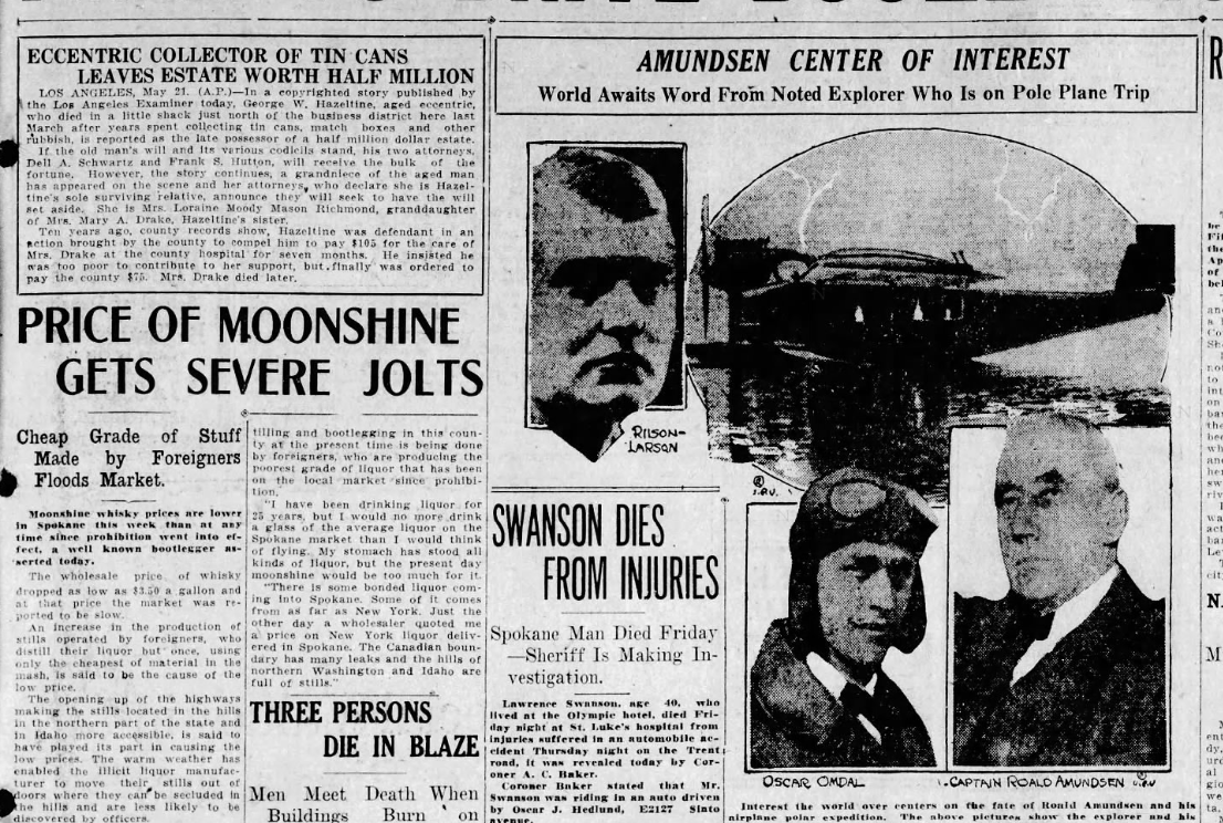 From 1925: The price of moonshine whiskey plummeted in Spokane during the week, because of “stills operated by foreigners.”