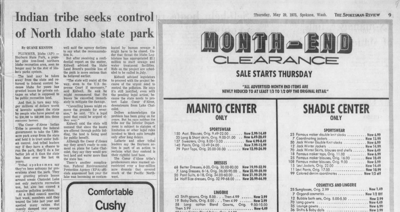 From 1975: The Coeur d’Alene Tribe was urging the federal government to take Heyburn State Park away from the state of Idaho and “hold it in trust under Indian control.”