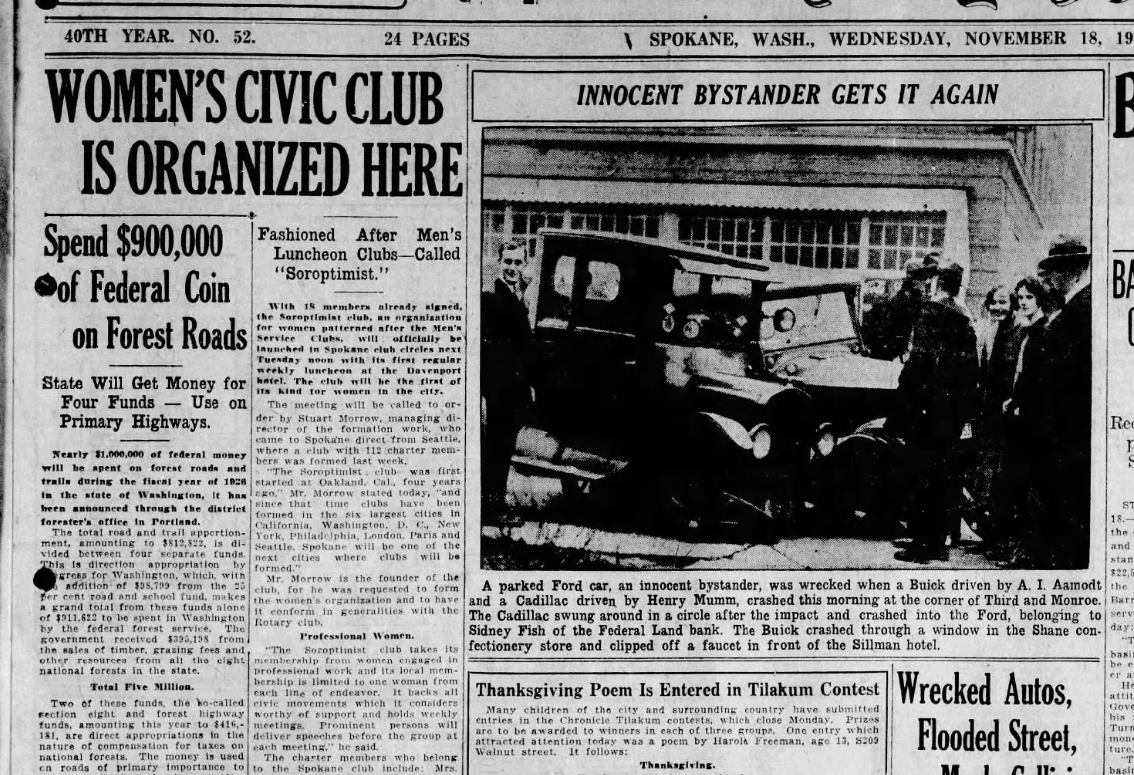 From 1925: Spokane was getting a new professional women’s civic club: The Soroptimist Club.